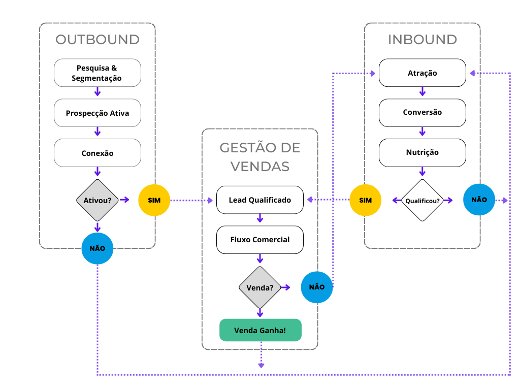 Diferente das estratégias que focam em apenas um canal, o Funil em Y integra Inbound e Outbound, diversificando a captação de leads e reduzindo riscos.